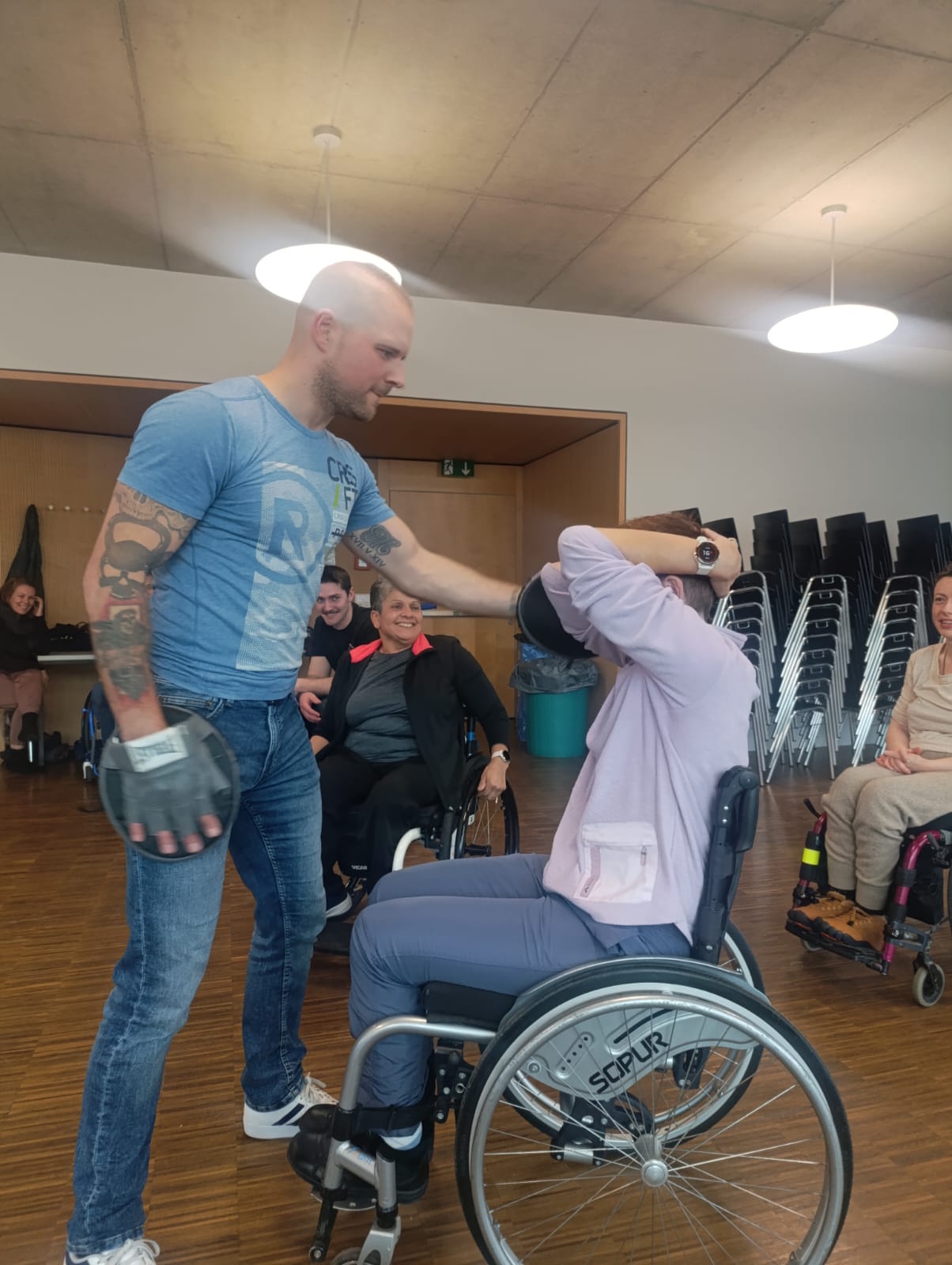 Anschließend zeigte uns Yannick Selbstverteidigungstechniken und Körperhaltungen für kritische Situationen. Griffe, Schutz, Körpermechanik... ein sehr lehrreicher Moment, der von allen sehr geschätzt wurde!