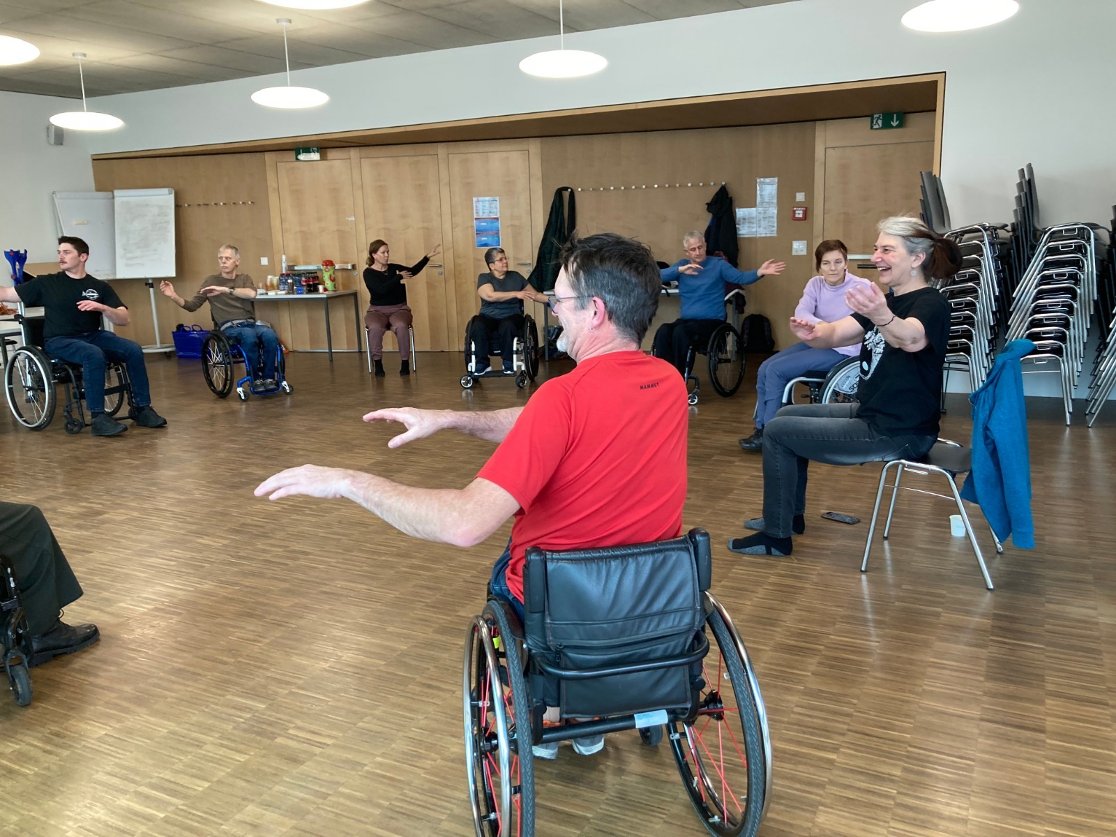 Viviane, die seit 2004 Tai Chi praktiziert und in angepasster Praxis ausgebildet ist, führte uns durch langsame und angenehme Tai-Chi-Formen und schloss mit der Abfolge der 5 Elemente (TMW – Tai Chi Movement for Wellbeing) ab.